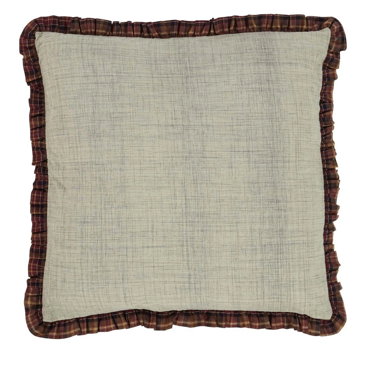 The Abilene Star Euro Pillow features a wonderful khaki tan & warm gray interwoven slub weave, accented with a chocolate & khaki tan plaid ruffle edging. Subtle & charming!