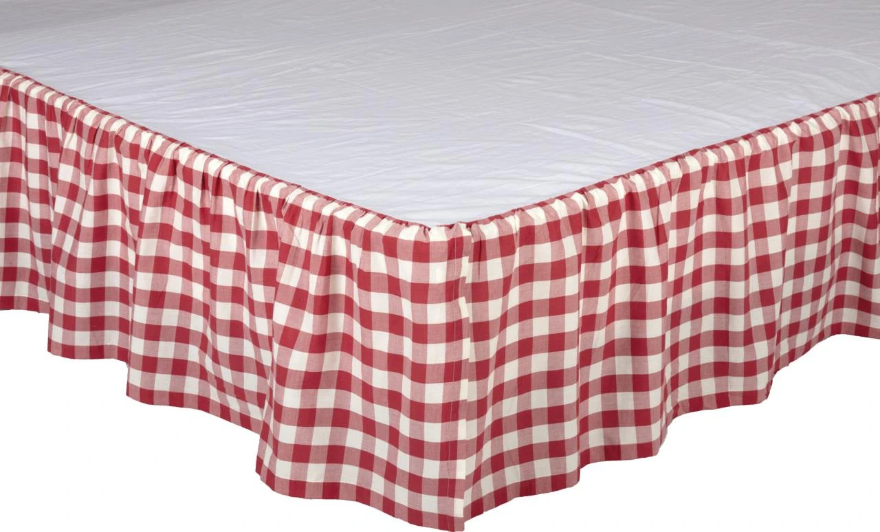 Country style at its finest! The Annie Buffalo Check Ruffled Red Bed Skirt by VHC has a large scale check pattern in red and white to give you that down home country farmhouse feel!