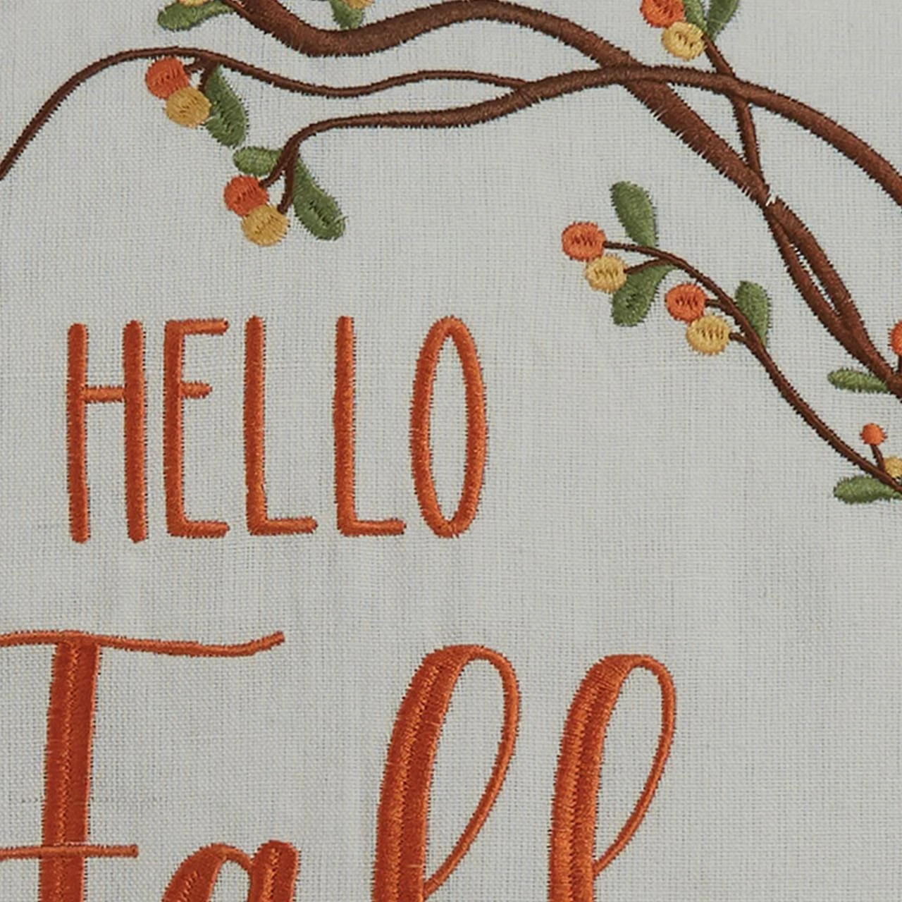 The Bittersweet Embroidered Pillow by Park Designs features the beautiful fall colors of orange, green, brown, yellow, and candlelight white pumpkins on a neutral background! So country charming!