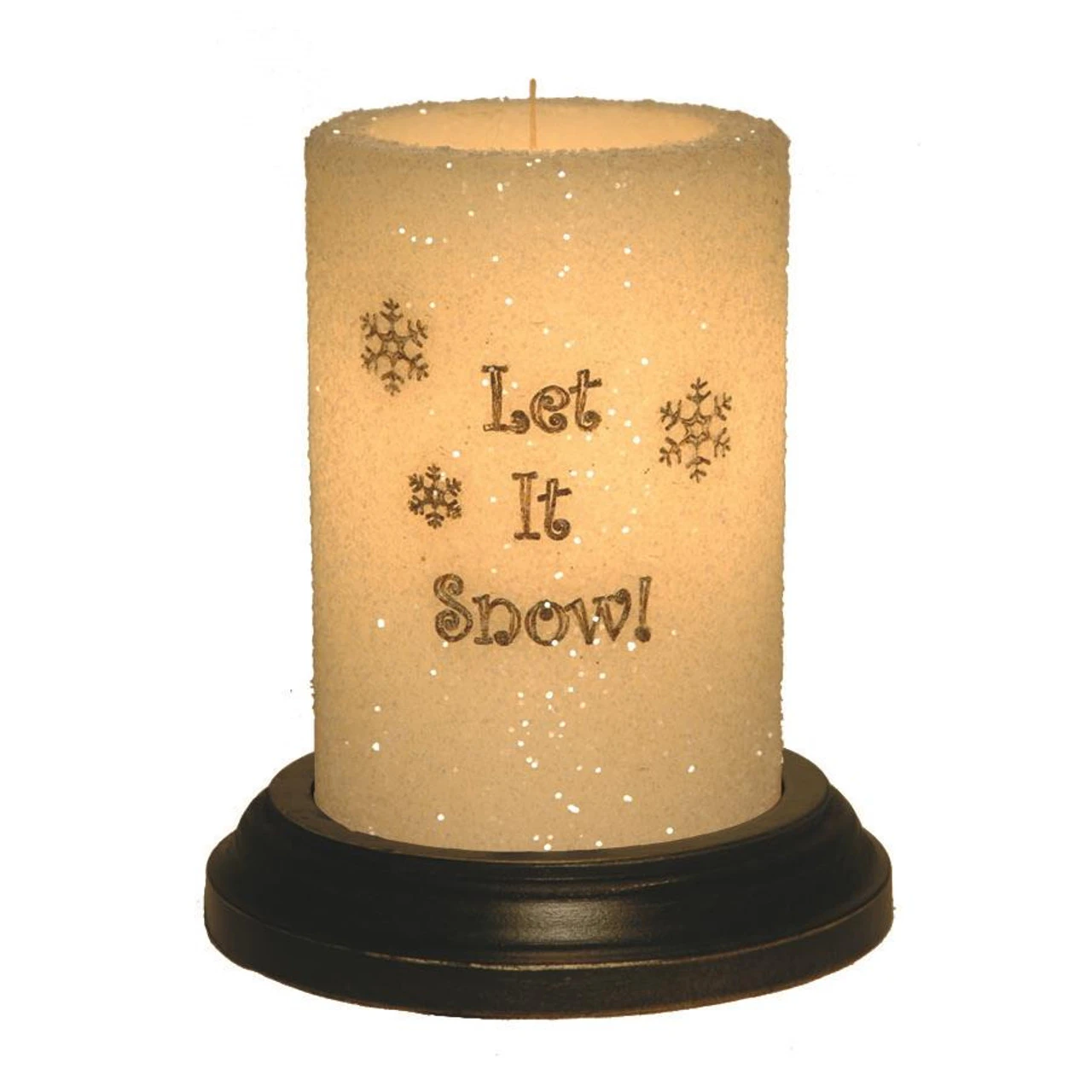 Attention all snow lovers…Add warmth to your winter by accenting your favorite gathering room with this glittery, gentle reminder to bring on the season! Extra special glowing on a window sill.