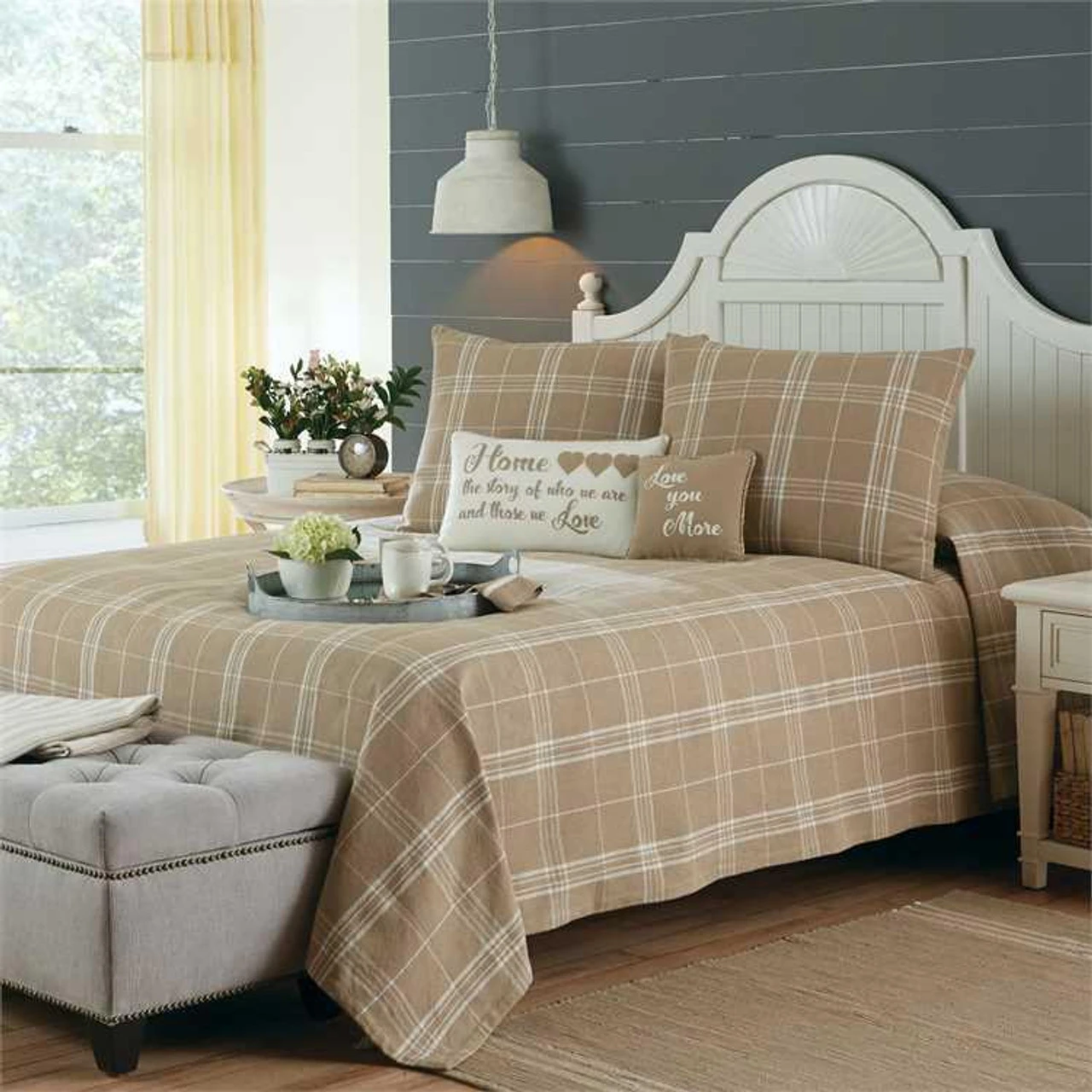 Fieldstone Plaid Queen Bedspread – Cream 94×108