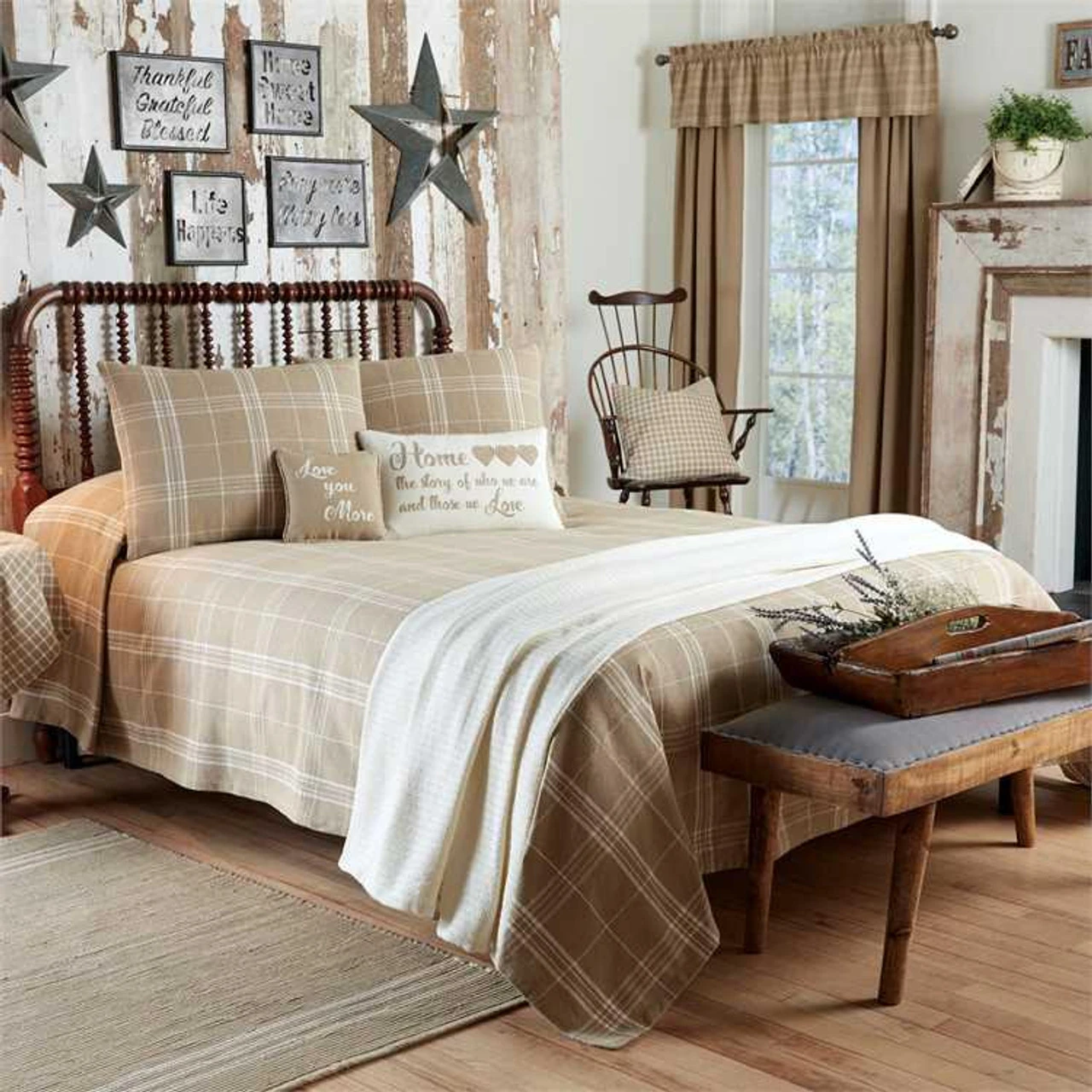 A classic design that can be used with 3 different decors just by changing out a few pillows and accessories. The Fieldstone Bedspread by Park Designs could be used in a country, farmhouse or lodge setting. The oatmeal and cream colors make it easy to incorporate additional colors and patterns to your decor. Available in a matching standard sham as well (sold separately).