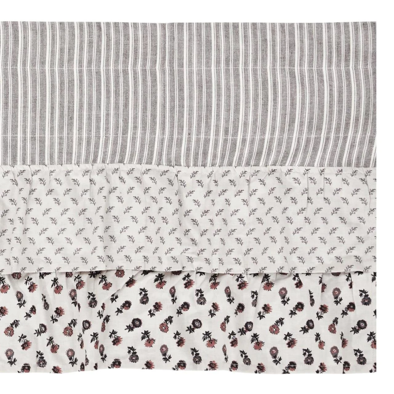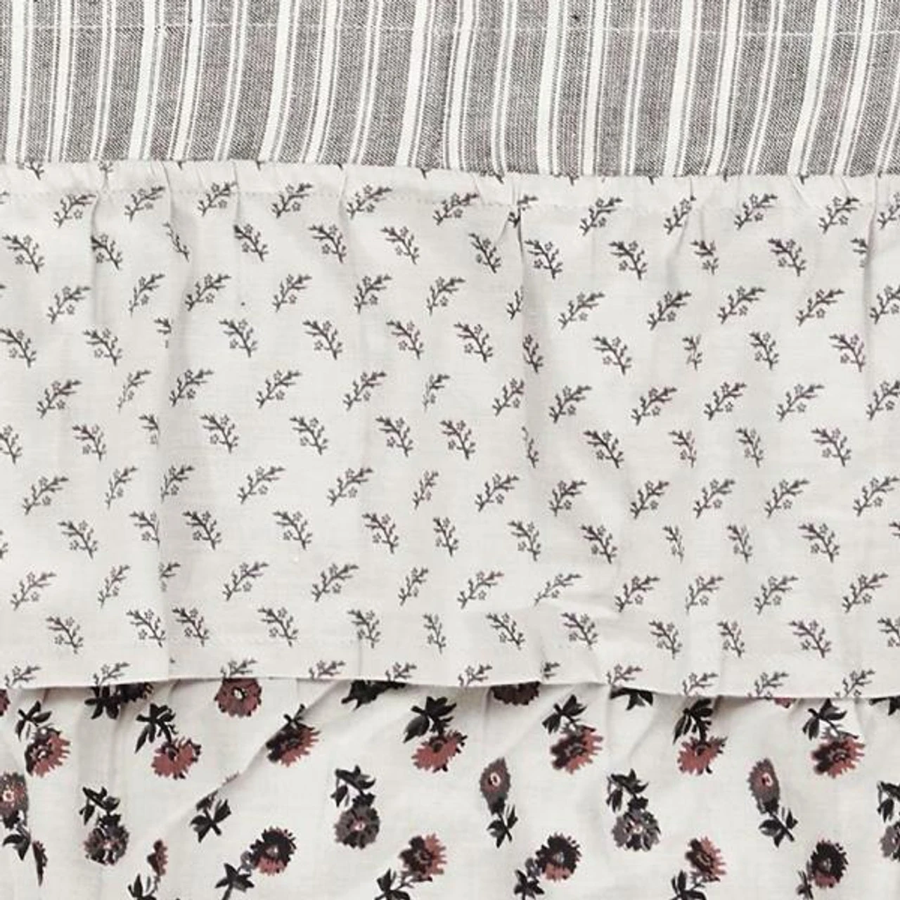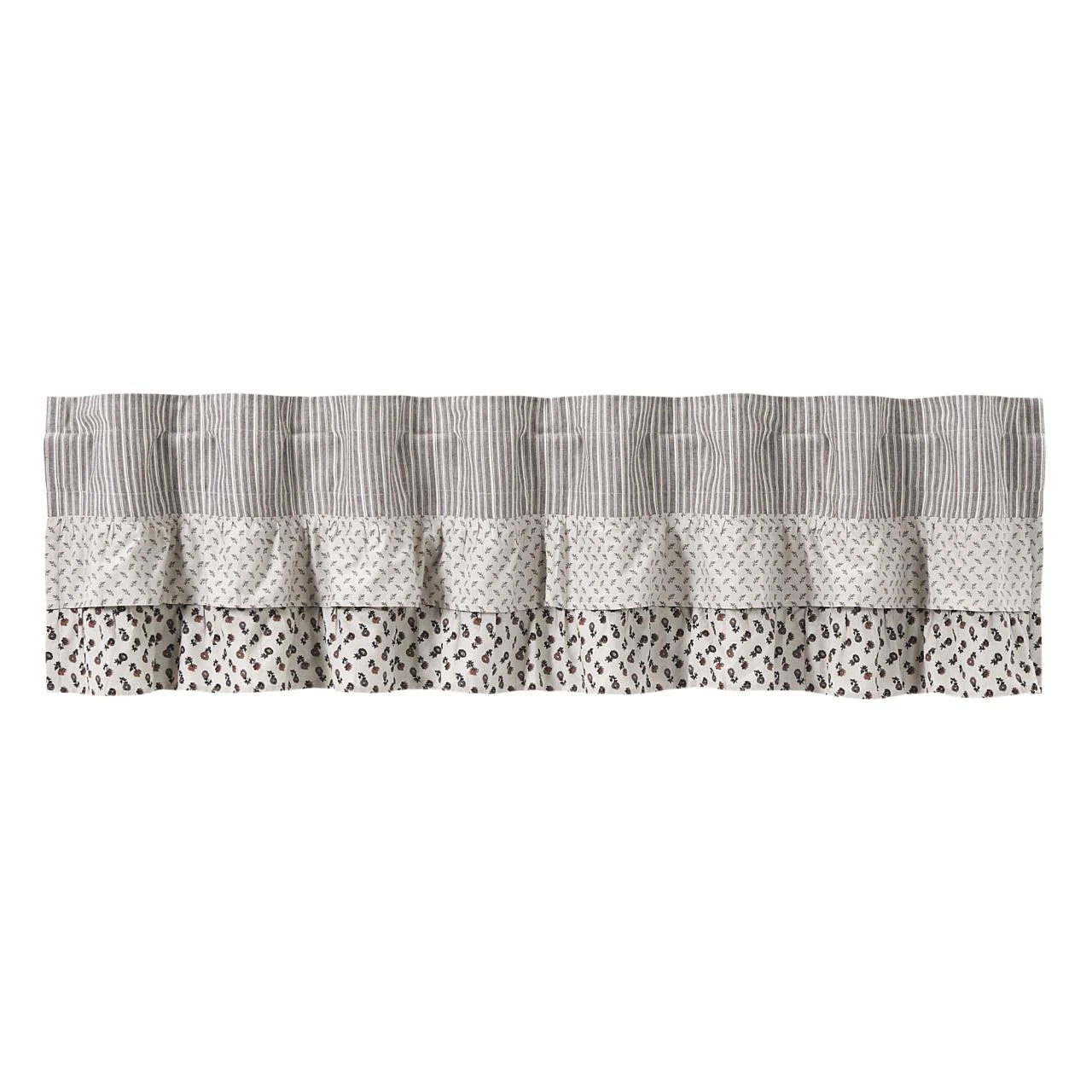 Add some style to your window with the gorgeous Florette Ruffled Valance by VHC! Tones of country rose, walnut, and candlelight white combine to create two ruffled designs, complemented by a candlelight white and walnut striped design above! Simply beautiful!