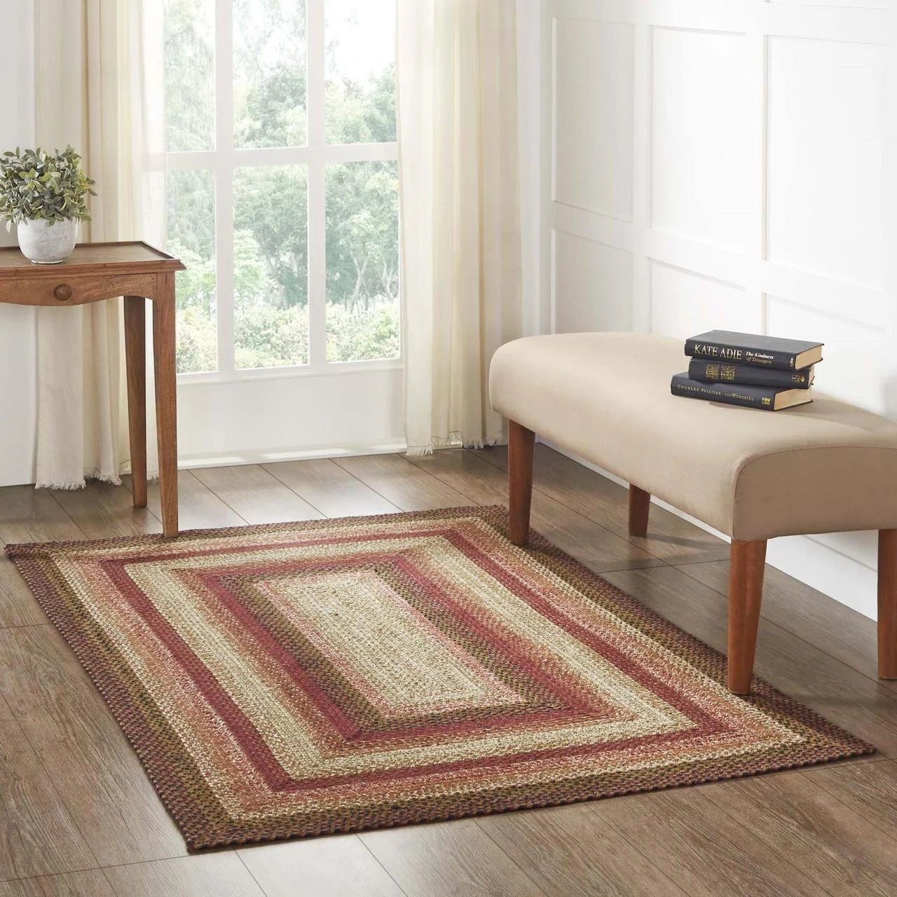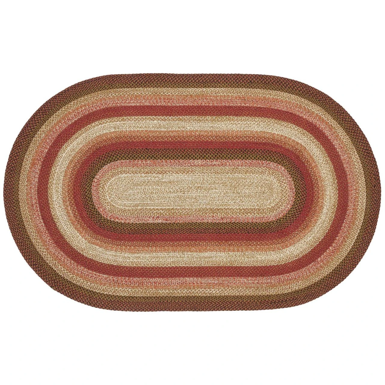 Add a beautiful warm accent to your home with the Ginger Spice Jute Rugs by VHC! Tones of patriotic red, nectarine, candlelight white, and buttercream combine with subtle accents of black to create a charming pattern! Stylish accent to any decor! Available in either a rectangle or oval shape and a variety of sizes!