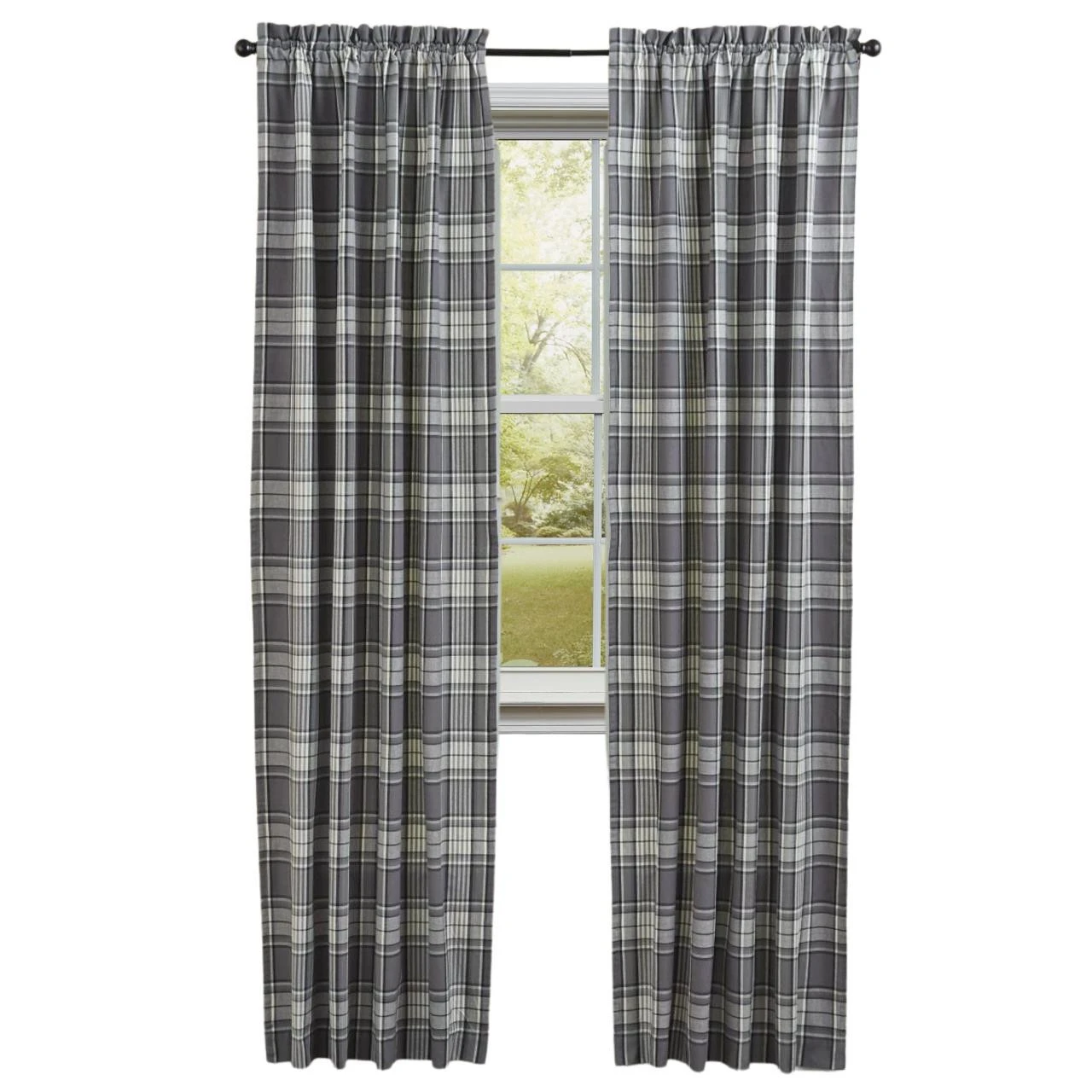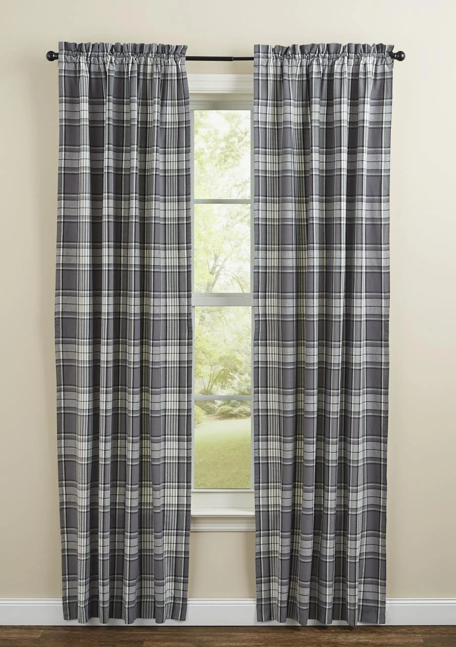 Soft grays, white, and black combine to create a beautiful country plaid in the Gray Area Lined Panels by Park Designs! A charming way to add style to your home! Coordinate with the complementary Gray Area kitchen linens and curtains for a complete look!