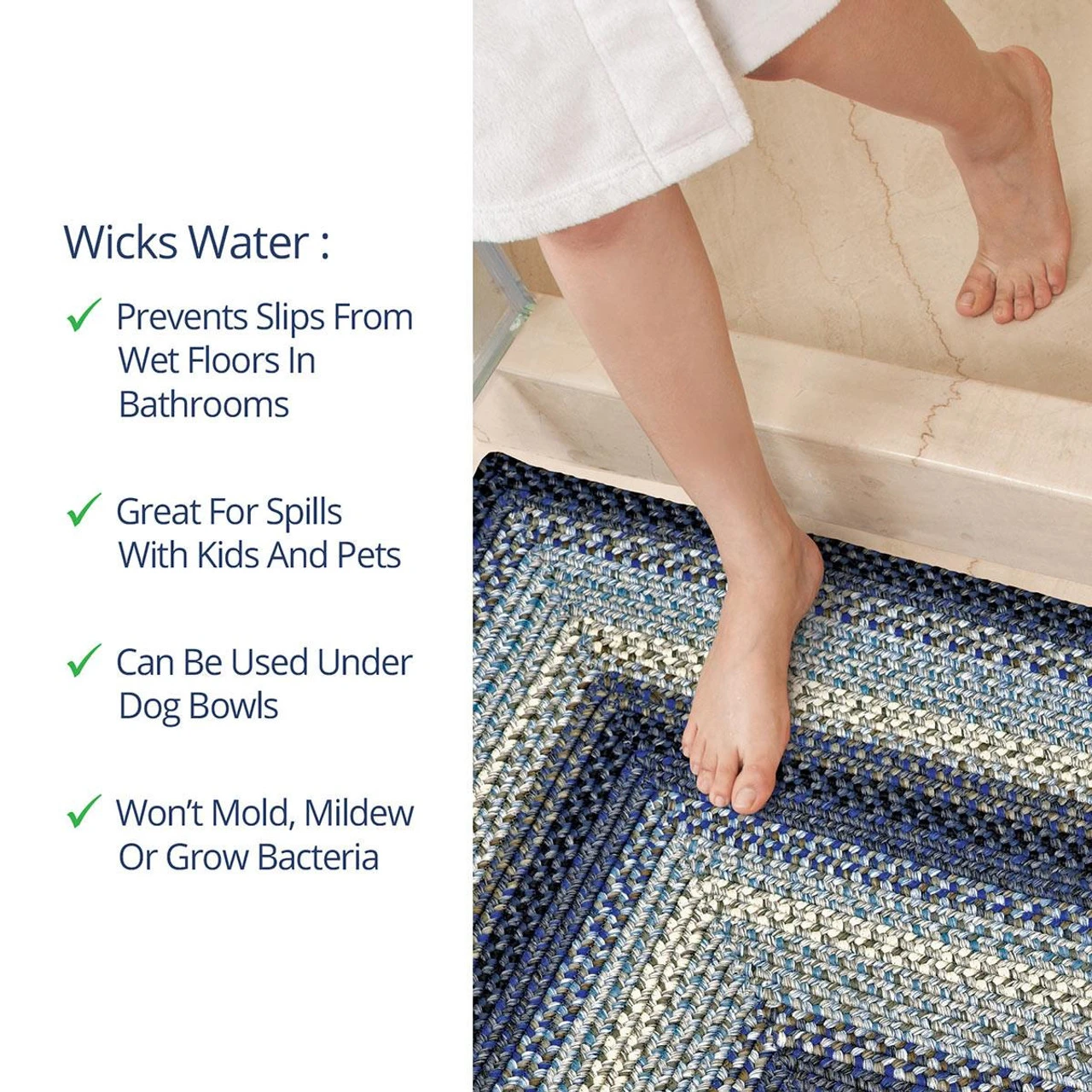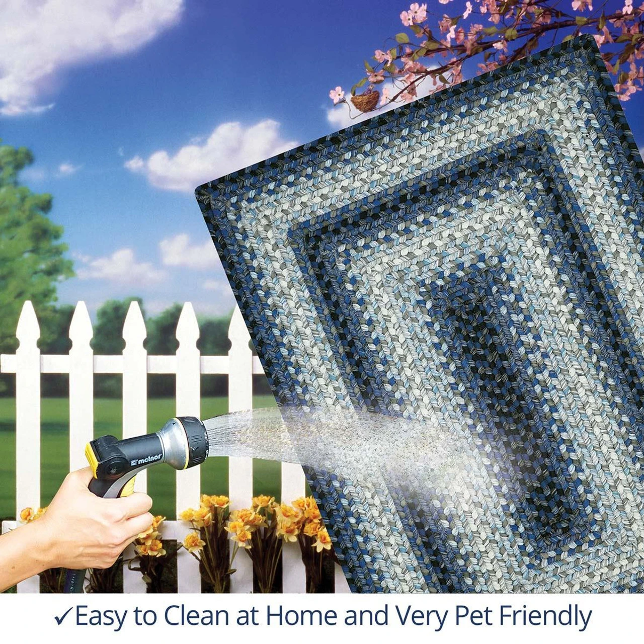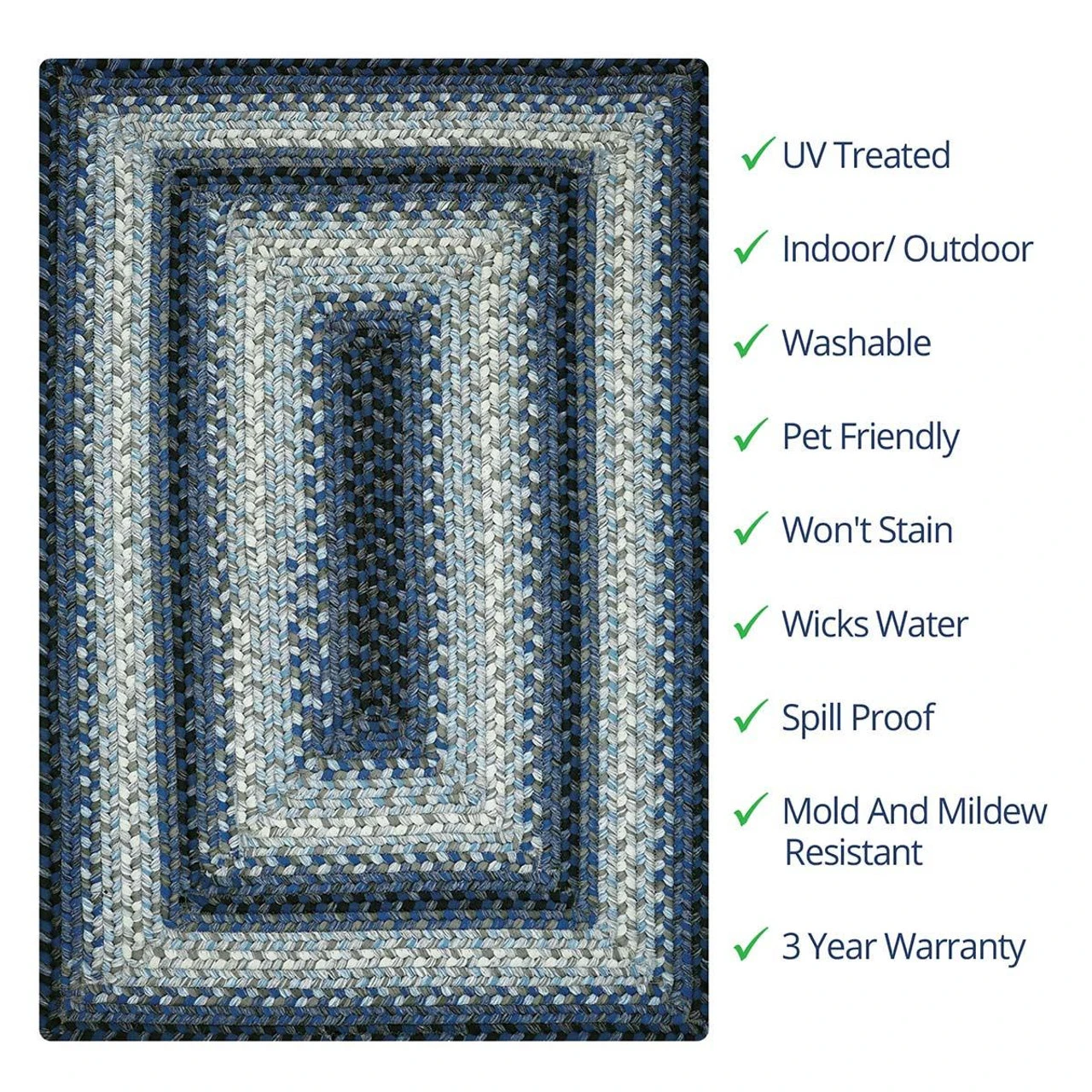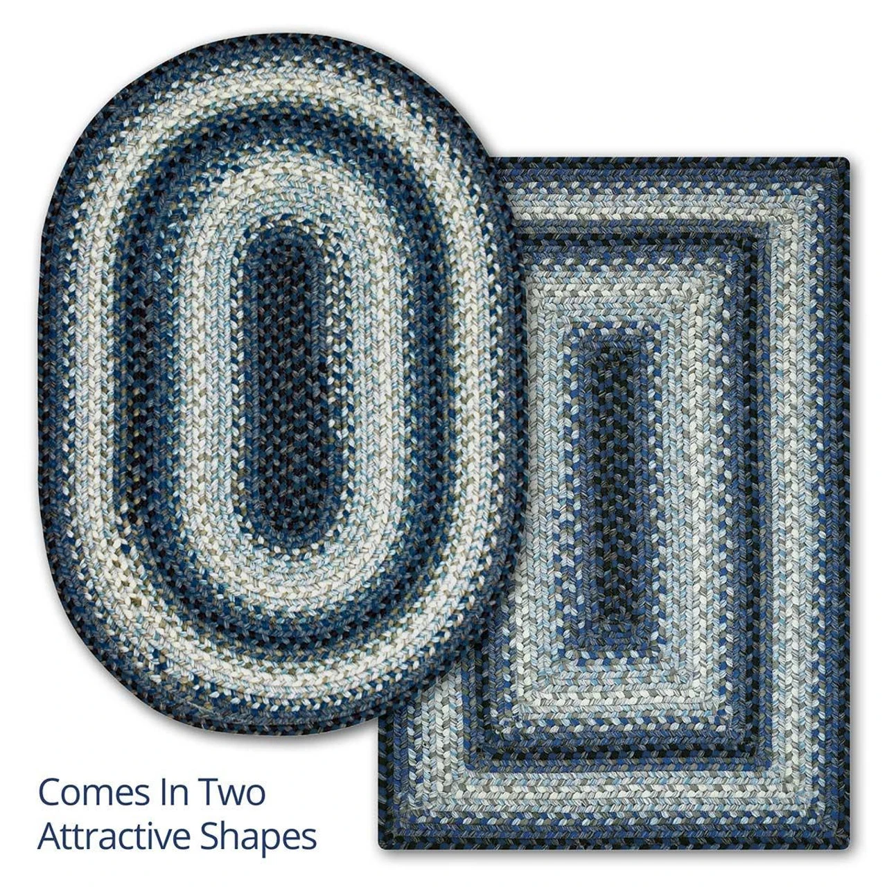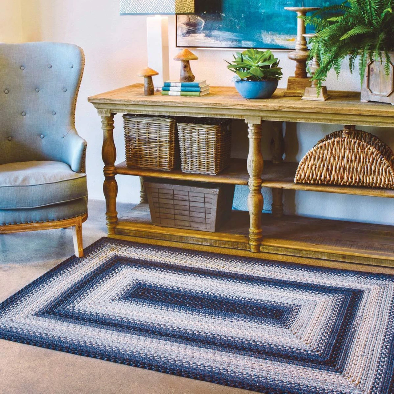 Various shades of blue, tan and gray tones are abundant in the beautiful Juniper Ultra Durable Braided Rugs.