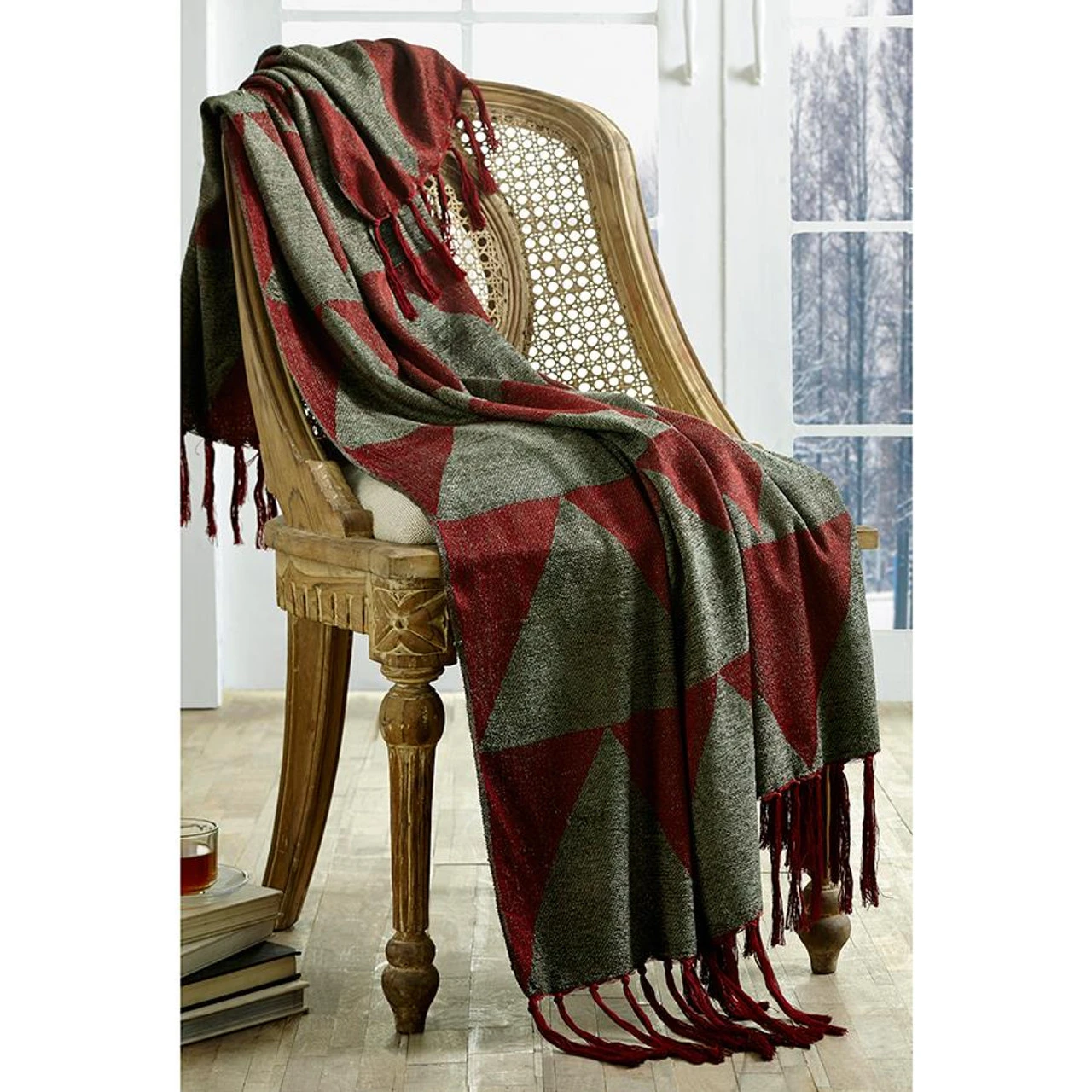 Triangles of New England cranberry and dark sage abound in the Nicholas Woven Jacquard Throw. It is finished with 4″ tassels on both short ends. Vibrant, soft and comfy-cozy, this is one throw your family will fight over! You might want to order two!