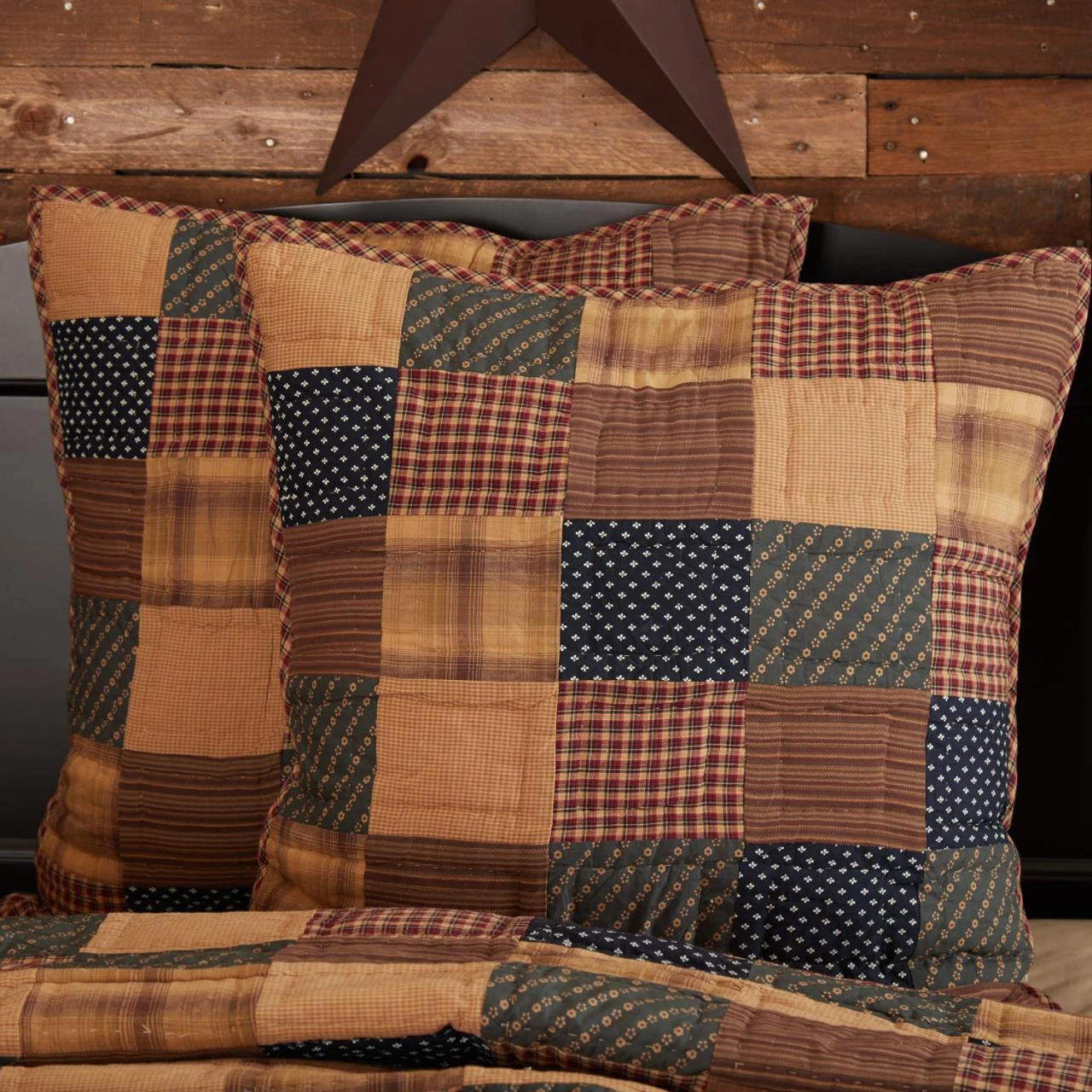 The Patriotic Patch Euro Quilted Pillow provides just the right amount of country flair! Featuring a random patchwork square design, the red, blue, tan & brown combine to form a myriad of woven & printed fabrics, creating an Americana appeal. Perfect for your home decor!