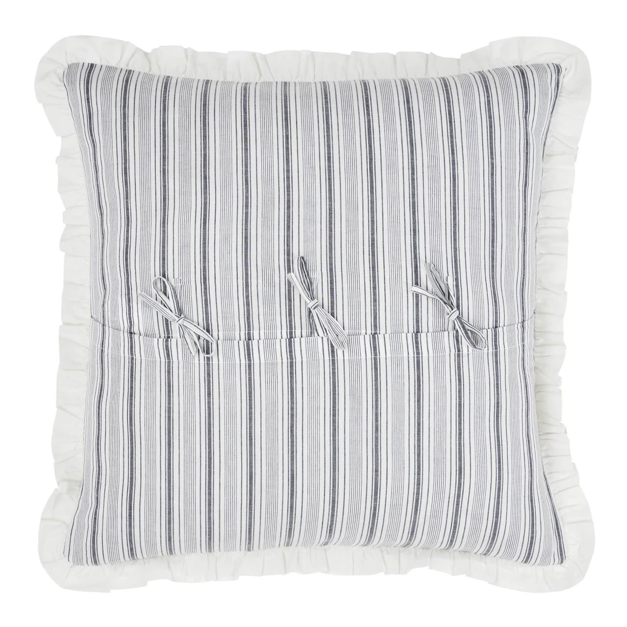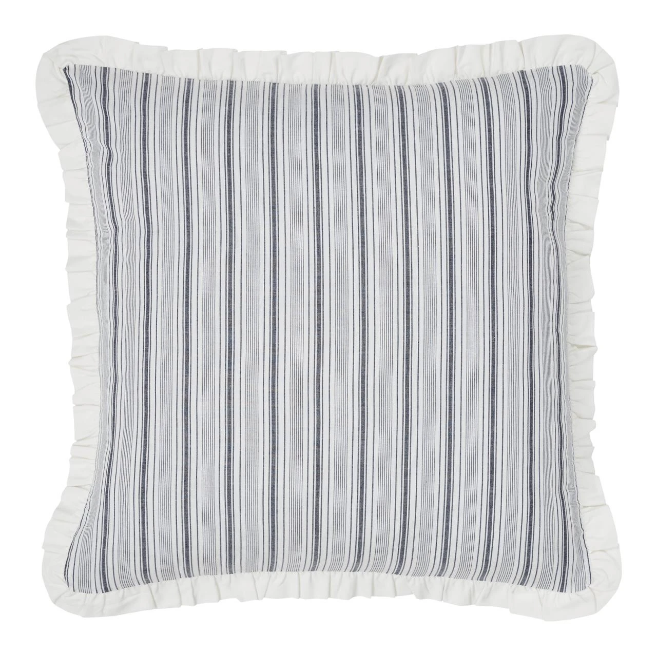 The Sawyer Mill Black Euro Fabric Pillow Sham by VHC will add that classic country look to your bedroom or any other room that needs a stylish touch with its charming black and candlelight white striped design! The ruffles are the perfect finishing touch! A great way to add a fresh new look!