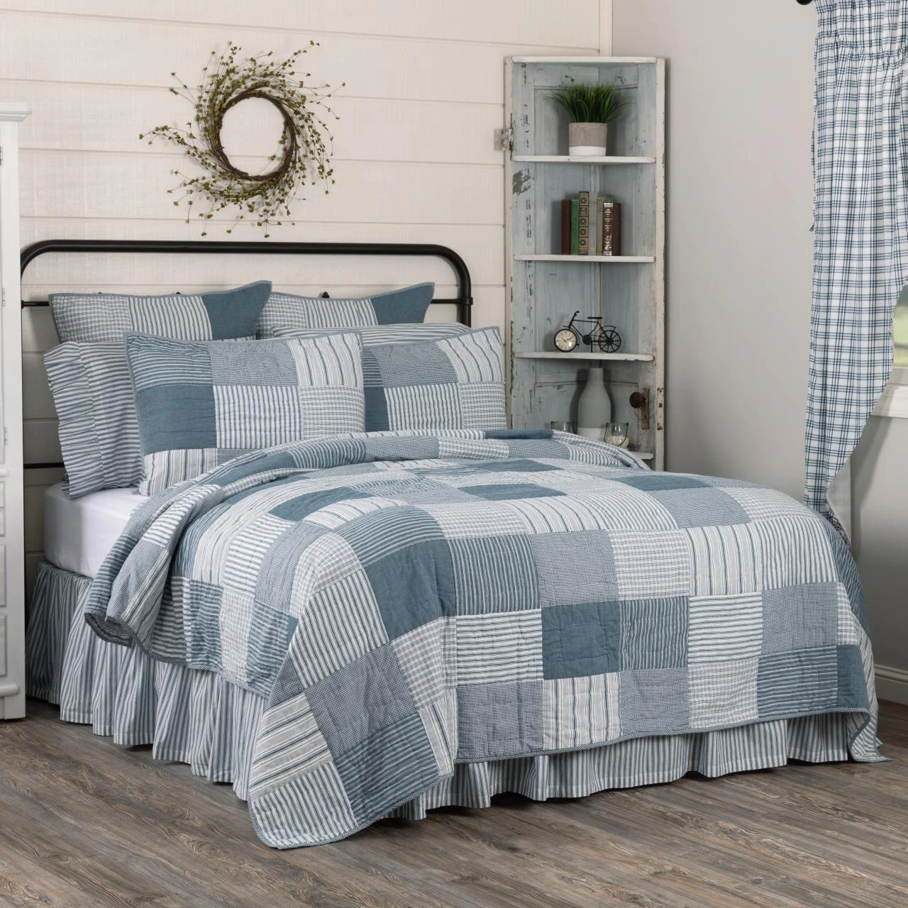 Fresh colors with a relaxed feel is what you will find with the vintage stripes, microchecks and solid block pattern of the Sawyer Mill Blue Quilts by VHC. Available in 5 different sizes!