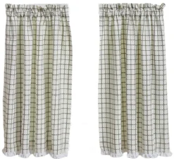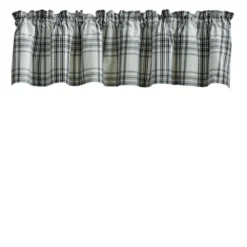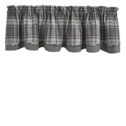 The Star Vine Lined Triple Point Valance has the look of old mattress ticking in updated country colors. It features a soft, neutral wheat background inlaid with narrow sand stripes, and for added country flair, it offers a sweet black star with berry vine motif in each of the triple points! So charming!
