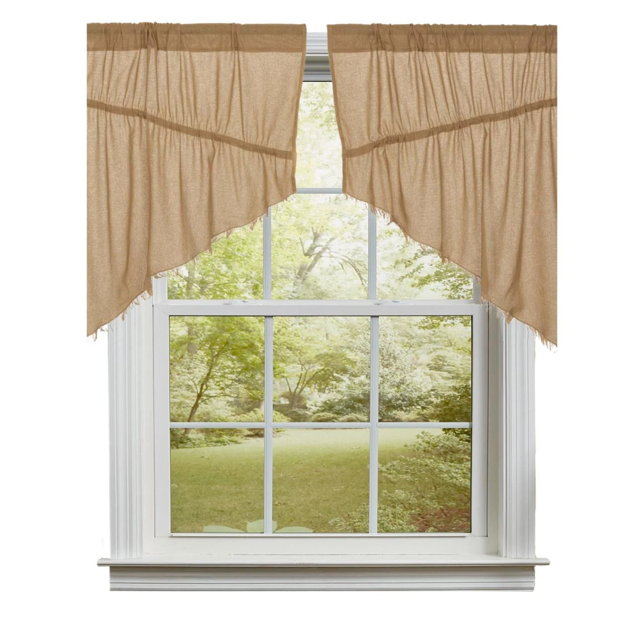 Nothing says “country” like these Tobacco Cloth Khaki Prairie Gathered Curtains! Tobacco cloth is great for providing privacy while allowing a light & airy feel in a room, and the frayed edges provide the perfect finishing touch! The neutral khaki color accommodates many home designs! Country charming on their own, or pair with coordinating tiers for a more dramatic appeal!